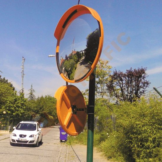 Oglinda circulatie 600 mm rotunda, portocaliu cu negru cu unghi mare de observație concepută special pentru a crește siguranța pietonilor și a bicicliștilor. Aceasta oglinda circulatie 600 mm rotunda, portocaliu cu negru ajută la vizualizarea în unghiurile moarte, în curbe și intersecții, a pietonilor și bicicliștilor de către toți conducătorii auto. Oglinda este confecționată din acril, un material cu o rezistentă la impact mai mare cu 70% decât sticlă. Oglinda poate fi fixată pe stâlpi (diam. 50-85mm), semafoarele sau pe indicatoarele de trecere de pietoni. Oglindă rutieră este livrată cu sistemul de prindere pe stâlp (diam. 50-85mm) si pentru perete.